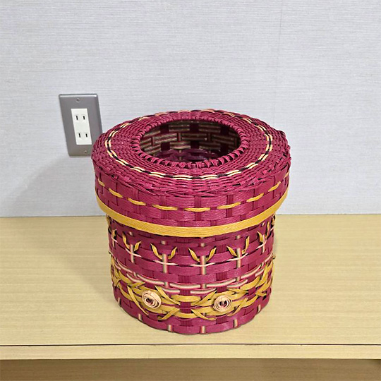 ふたつきのダストボックス(やつ102) やつ 2025年08月09日 手持ちの残りテープを利用しました(`・ω・´)b 側面の柄がお気に入りです! yatu2025_102 yatu2025_102 yatu2025_102 やつ一覧はこちら > ピンク(*^-^*)のかごバッグ(やつ101) かすり染め白とヴァイン(さくら195)