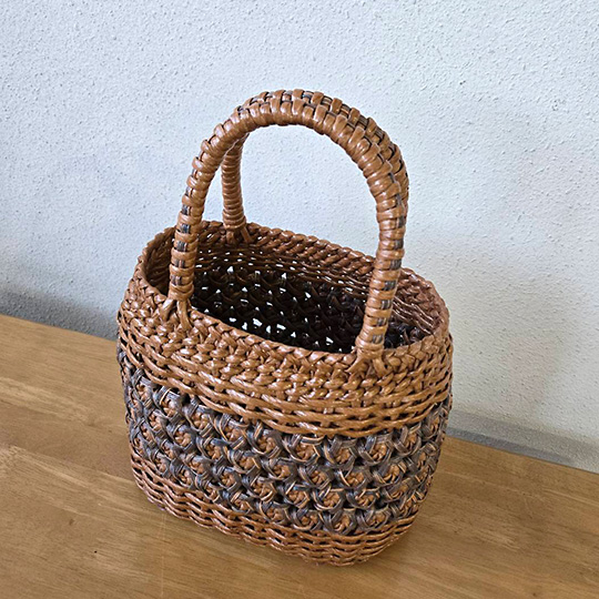 花車編みのかごバッグ(てら103) てら 2026年01月12日 パピエスのヴァインとかすり染め紙バンド使用 tera2026_103 tera2026_103 tera2026_103 てら一覧はこちら > ワンハンドルかけ編みのかご(やつ119) 追いかけ編みのかごバッグ(てら104)
