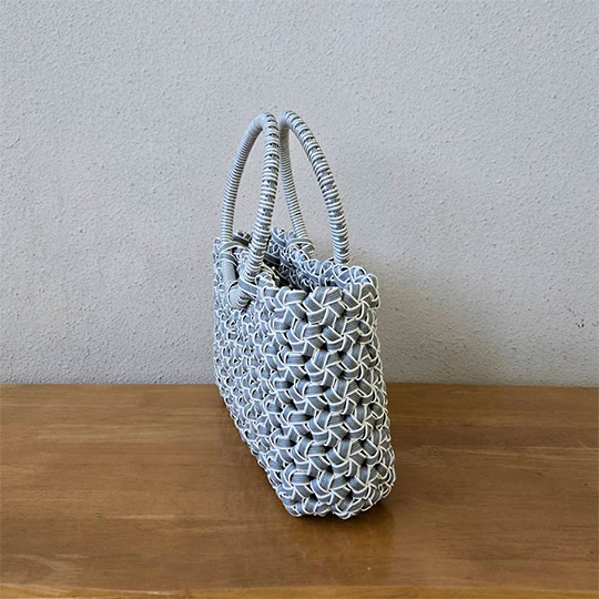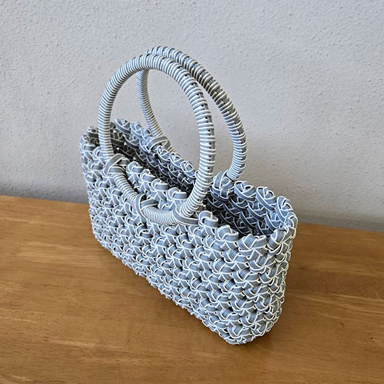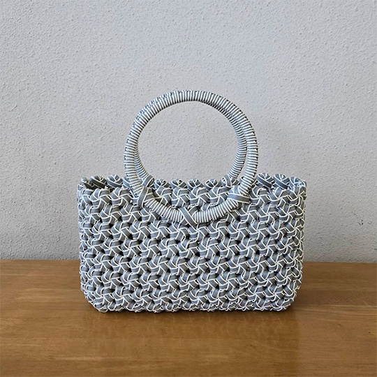 花結び編みのかごバッグ(てら105) てら 2026年01月12日 M’sさんのハーフラインクラフトバンド(紙バンド)使用 tera2026_105 tera2026_105 tera2026_105 てら一覧はこちら > 追いかけ編みのかごバッグ(てら104) 菱模様のA4サイズのバッグ(きら106)