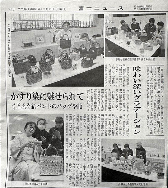 パピエスミュージアム(さくら227) かすり さくら 2026年03月18日 4月中旬までパピエスミュージアムに展示予定です! 他の作家さんの素晴らしい作品も多数展示してありますので、是非この機会に実物をみてください。クラフトの奥深さをさらに知ることが出来ると思います(^^)/ すこし?だいぶ?遠いですが…(;^ω^) sakura2026_227 sakura2026_211 sakura2026_227 sakura2026_211 さくら一覧はこちら > かすり作品一覧はこちら > ecocraft, kraftband, krafttape, SakuraSakura, エコクラフト, クラフトテープ, クラフトバンド, 手づくり 講座見本!PPバンドかごバッグ(さくら226) 四ツ目崩しの大きめかご(やつ121)